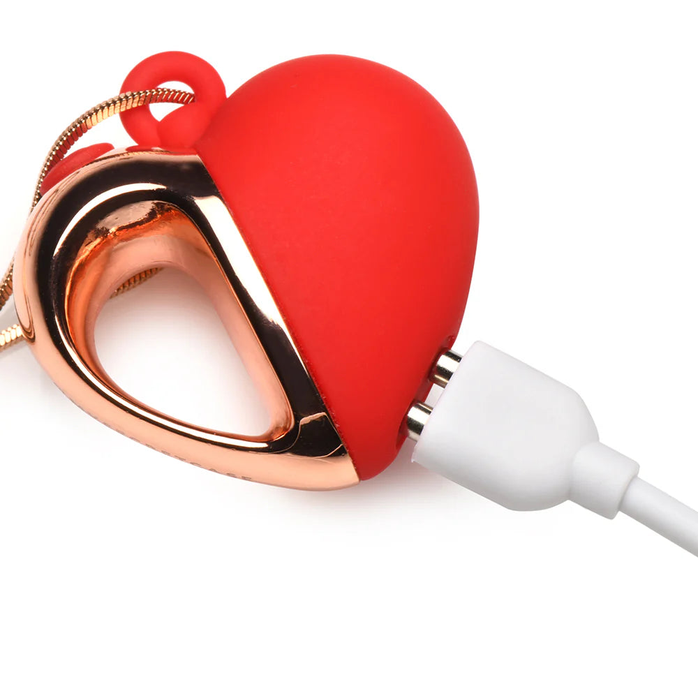 The Vibing Heart is more than just an accessory - it's an adventure waiting to happen! Made with luxurious rose gold and red silicone, this necklace delivers 10 powerful vibration modes for ultimate pleasure. From pinpointing clitorises to teasing nipples, the Heart is perfect for on-the-go stimulation or late night excitement. Crafted with body-safe materials, it's both stylish and safe. Take a chance and let the Charmed Heart Necklace Vibe charm you!